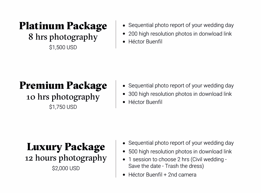 Me especializo en bodas destino, he trabajado en varias ciudades de México, Europa y Estados Unidos, por lo que la movilidad para mí no es un problema, por lo que será un gusto para mí acompañarlos y compatir con ustedes ese gran día.